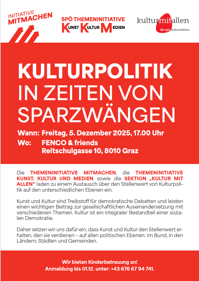 Wer sich über die Themeninitiative "Kunst Kultur Medien" genauer informieren oder mitmachen möchte, ist hier richtig: https://share.google/j7liXDC88zREjn2F4